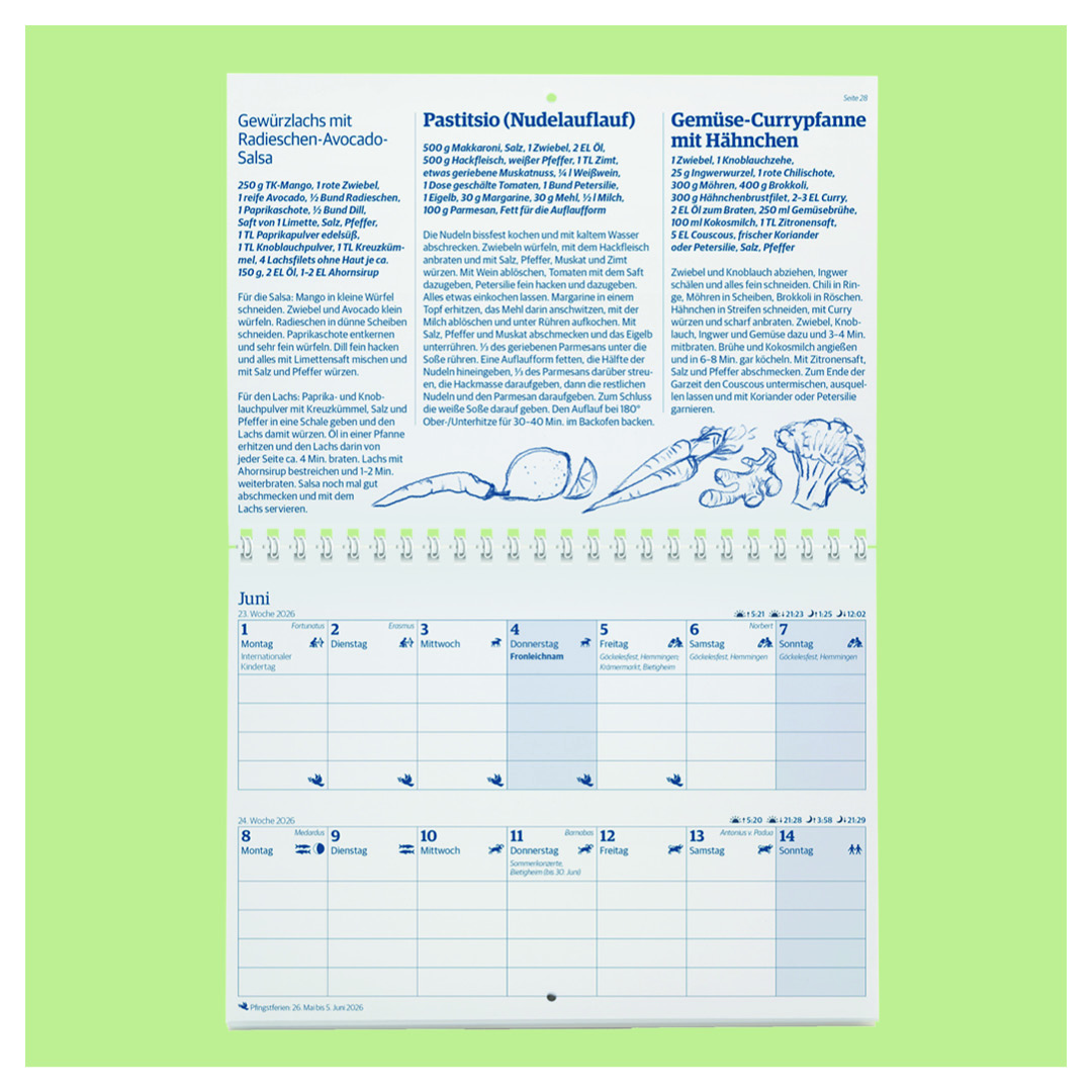 „Mit den Landfrauen durchs Jahr 2026“ begleitet Sie wieder mit viel Herz, Genuss und praktischem Wissen durchs ganze Jahr. Freuen Sie sich auf köstliche Koch- und Backrezepte – vom frühlingshaften Spargelrisotto über sommerliches Zimtparfait bis hin zum klassischen Eierlikör-Kuchen.